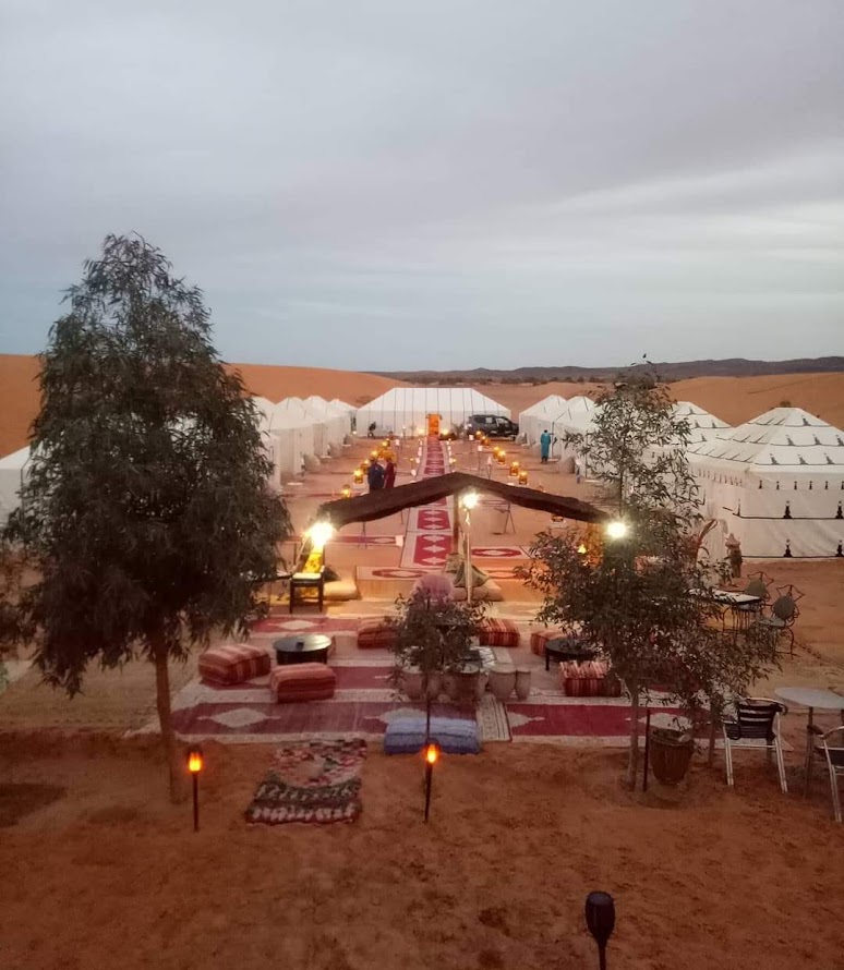 Vive una aventura única con esta excursión de 3 días y 2 noches desde Fez al Desierto del Sahara. Recorre los paisajes fascinantes del Medio Atlas, atravesando Ifrane y los bosques de cedros de Azrou hasta llegar a las impresionantes dunas de Erg Chebbi en Merzouga. La primera noche relájate en un hotel tradicional con encanto y al día siguiente disfruta de una emocionante jornada en 4×4 por el desierto, visitando oasis, aldeas nómadas y los rincones más auténticos del Sahara. Termina el día con un mágico paseo en camello al atardecer y una noche inolvidable en un campamento de lujo bajo las estrellas, alojado en una elegante Haima en medio de las dunas.