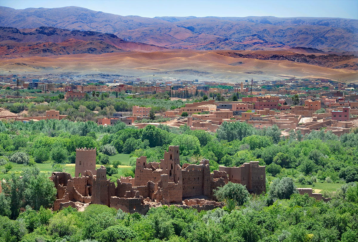 Tras recogerte en tu hotel o Riad partiremos hacia Ouarzazate. En el camino cruzaremos el Atlas por el increíble puerto Tizi N’Tichka, de 2.260 metros de altura. Poco después de cruzar el Alto Atlas llegaremos a la Kasbhas de Ait Ben Haddou, una increíble ciudad fortificada donde se han rodado películas como Gladiator y bébele e Lawrence de arabia Tras la visita tomaremos la Carretera de las Mil Kasbhas hacia Skoura donde pararemos en la Kasbah de Amridhyle. De aquí iremos hacia Kelaat M’gouna, capital del Valle del Rosas una parada panorámica para fotos. Continuamos a Valle del Dades, donde nos alojaremos, Cena y desayuno.