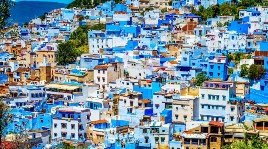 Desde el aeropuerto o puerto & hotel de Tánger, los recogemos y comenzamos a conducir por las montañas del Rif y la ciudad de Tetuán para disfrutar de las vistas de las hermosas montañas y la costa del Mediterráneo del norte de Marruecos hasta llegar a Chefchaouan, uno de los impresionantes pueblos a los pies de las montañas del Rif. Chefchaouen Medina (parte antigua de la ciudad), con su color azul, se convierte en una de las mejores ciudades para visitar en Marruecos, rodeada por muchas artes, tiendas de artesanía, restaurantes en la plaza y cafés, Chefchaouen es un lugar para recorrer, disfrutar y perderse entre sus fantásticas callecitas rodeadas de casitas azules y blancas, que la convierten en una ciudad única. Después de llegar realizamos una visita guiada en la mano de guía local.