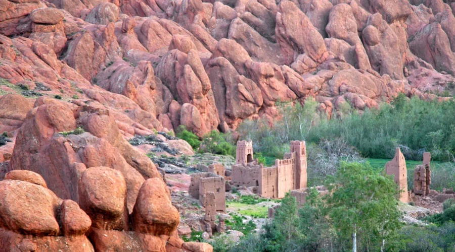 After breakfast, we continue our journey toward Tinghir, taking the “Road of a Thousand Kasbahs” through Skoura, and then Kelaat M’Gouna, the capital of the Rose Valley, where we will stop for panoramic photos. We continue to the Todra Gorge, where we can admire the magnificent palm groves. Next, we stop for lunch in Tinjdad.