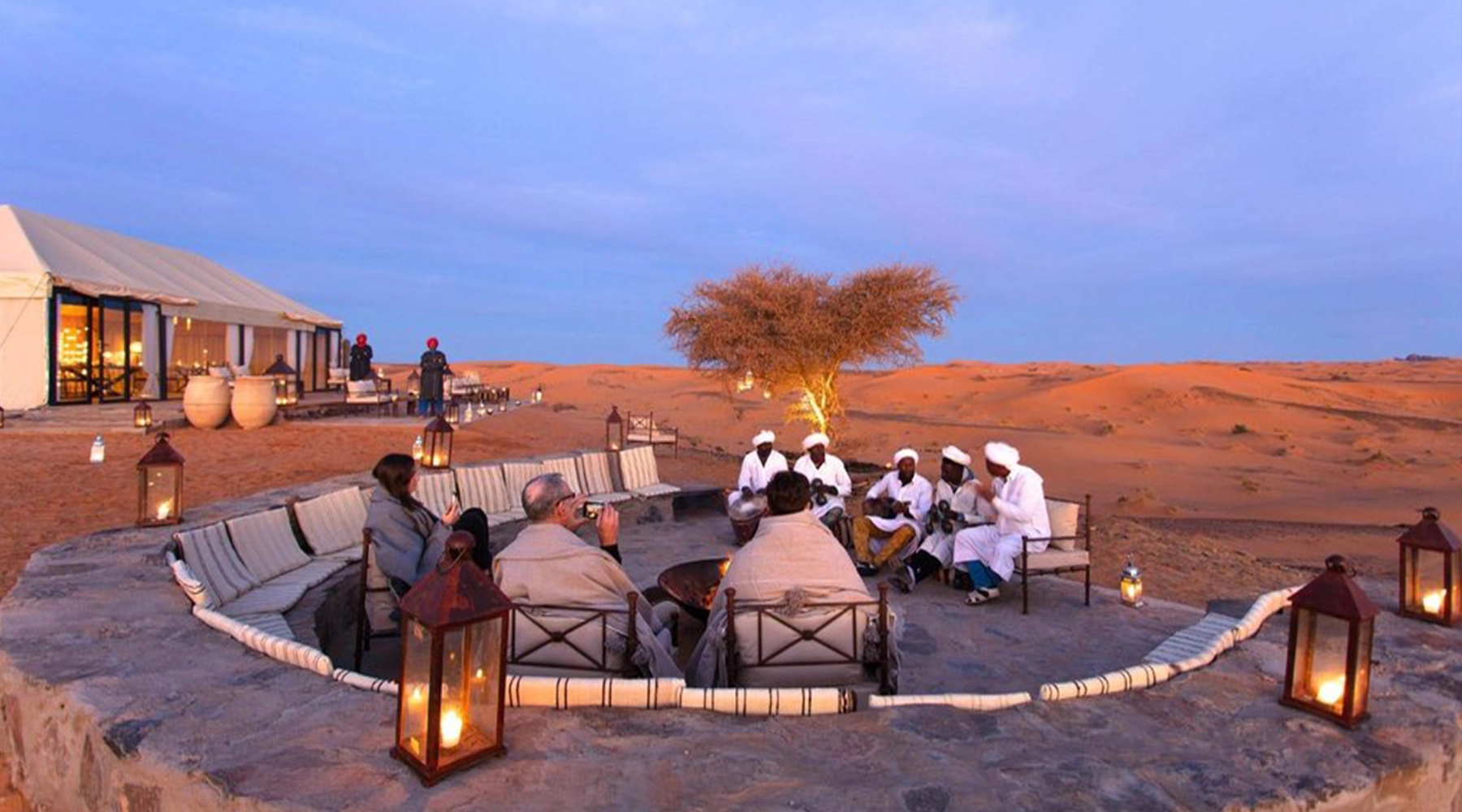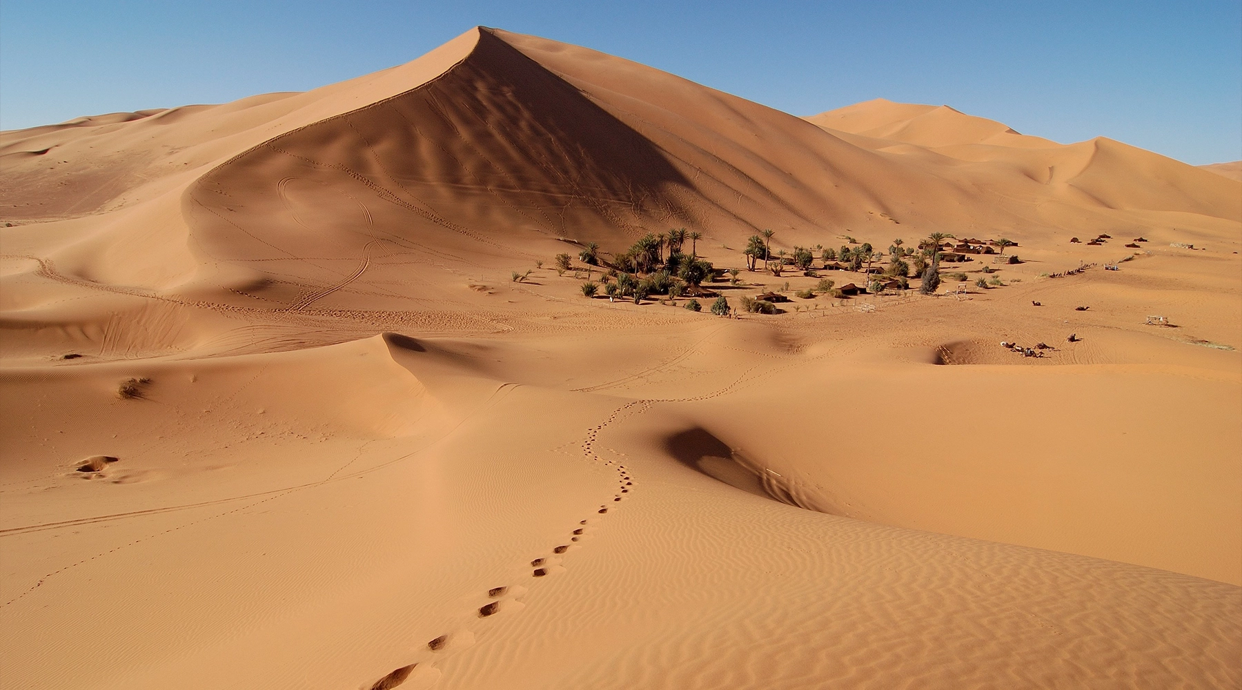 Dinner will be served in the tents with live music and a bonfire, under a breathtaking starry sky. We arrive at the camp, located in a wild oasis, where we will stay overnight in the tents, experiencing the heart of the desert under a spectacular blanket of stars.